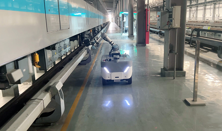 The Standard Train Inspection Robot is the most widely applicable model in our robot series.It features a four-wheel steering and four-wheel drive mobile platform with independent suspension,equipped with a flexible robotic arm and high-precision visual inspection system.Designed for daily inspection operations in subway depots,it captures high-definition images of key areas under and alongside the train without requiring the train to stop,ensuring safe and reliable train operation.