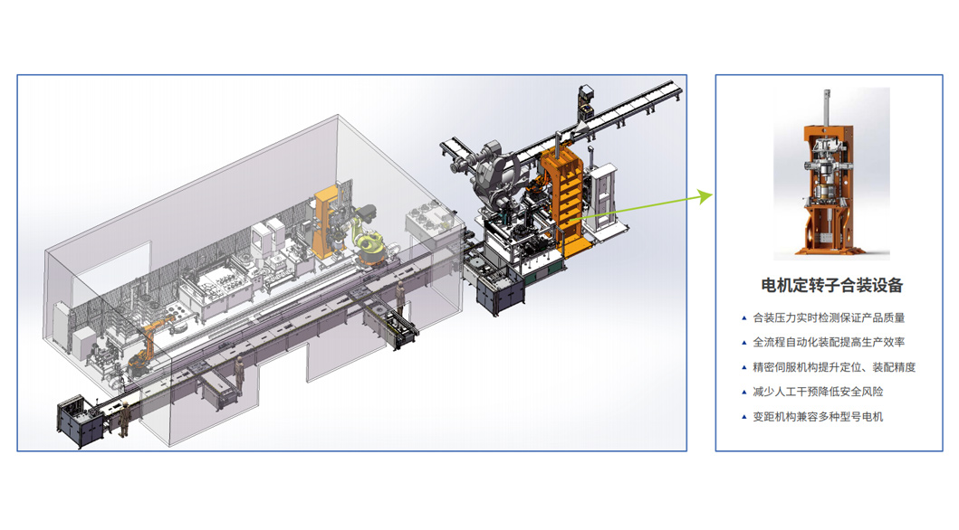 电机定转子合装单元,采用立式合装方式,兼容异步电机和永磁电机,在行业内具有领先意义。